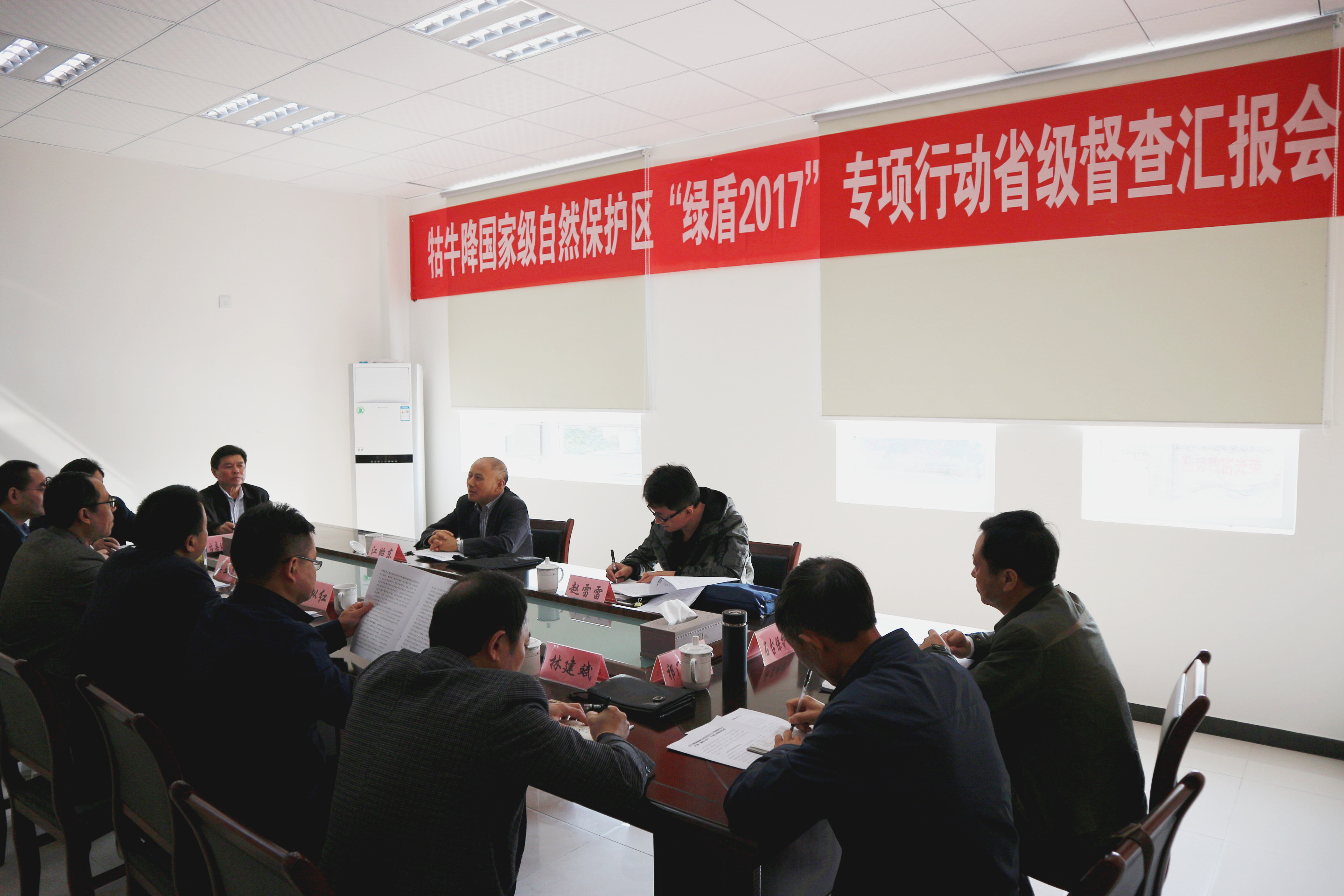 10月27日,省督查组江贻东、赵雷雷一行来到牯牛降保护区石台管理站,开展“绿盾2017”国家级自然保护区专项行动工作督查,石台县政府吴亚虎副县长、市林业局王枞红局长,石台县环保局、石台祁门两县林业局主要领导参加督查汇报会。