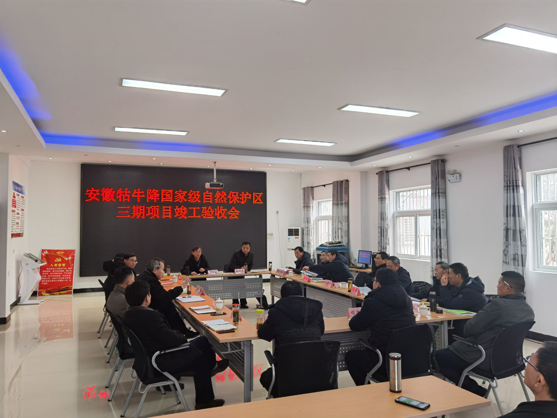 验收专家组首先充分听取了安徽牯牛降国家级自然保护区(石台、祁门管理站)关于项目建设与自查验收情况的汇报,并依据国家和省批复文件、项目建设审计报告及竣工财务决算报告,查阅有关工程技术及财务档案材料;随后现场核查了“牯牛降三期项目”建设情况。
