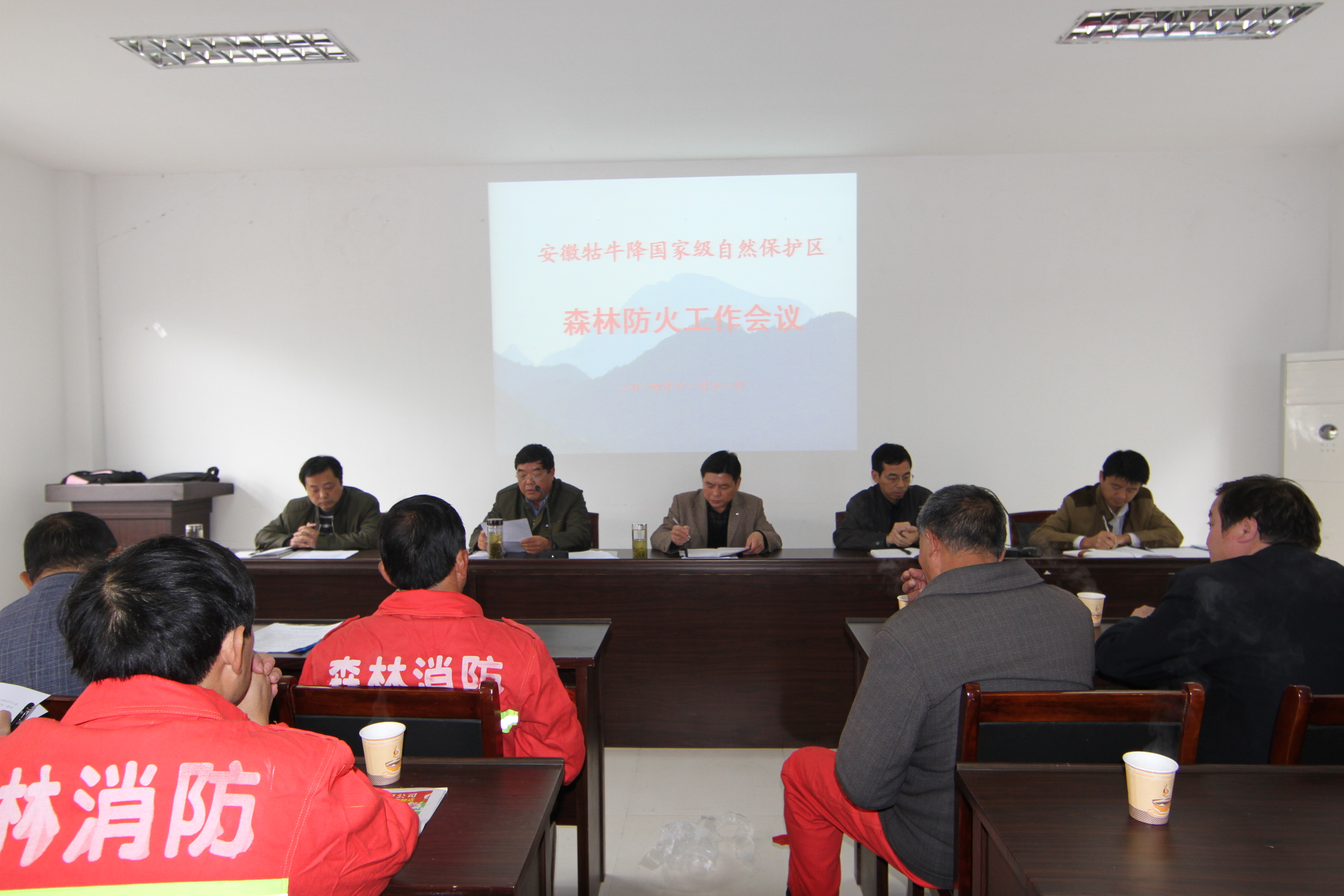 11月11日上午,牯牛降国家级自然保护区森林防火工作会议在张家宕管理站召开。会议由陈文豪站长主持,参会人员有仙寓、大演林业站站长,仙寓、牯牛降 森林派出所所长;保护区毗连村负责人,站护林员及牯牛降保护区森林消防队全体人员,会议特邀牯牛降风景区管委会领导参加,县防火办余永平主任、陈忠信副主 任到会并讲话。