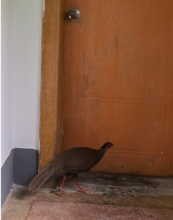 2021年4月13日,一只野生禽鸟被困在牯牛降石台管理站老办公楼走廊处。我站工作人员第一时间赶到现场,通过现场痕迹确定该禽鸟系从窗户飞入后无法飞出,该鸟身长60厘米左右,嘴粗短而强壮,鼻孔不为羽毛覆盖,翅稍短圆,尾长,通体呈橄榄褐色,经技术人员鉴定为白鹇成年雌鸟。白鹇属于大型鸡类,为国家二级保护动物,在牯牛降国家级自然保护区内广泛分布。