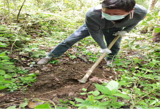 2022年4月24日我站接护林员上报信息,在保护区内发现一死亡野生动物,随及我站安排工作人员进山勘查,经技术人员现场检验,死亡野生动物为短尾猴,死亡时间已有半年,尸体已有白骨化,现场工作人员决定就地掩埋,采取无害化处理。
