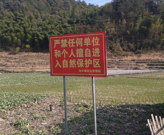 为加强牯牛降自然保护区管理,预防发生森林火灾,近期,牯牛降保护区石台管理站在进入保护区的主要路口设置了禁入牌五处。