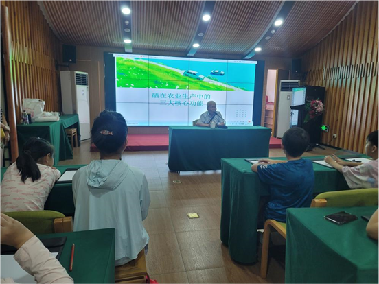 午后,资深富硒农业专家姚自鸣教授,作为原安徽省农科院绿色食品工程研究所所长,以及石台县生态富硒水的发现者,为同学们带来了精彩的科普讲座。他娓娓道来石台硒元素的发现历程、科学检测方法,以及如何将这一“健康元素”转化为富硒农产品,带动乡村经济发展。同学们明白了哪些农作物更易富集硒元素,以及富硒食物对预防慢性病的积极作用。