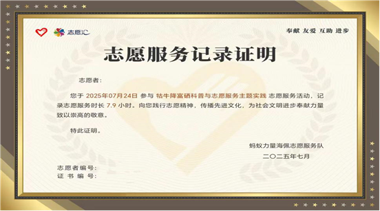 本次活动不仅是一次研学,更是一次志愿者行动。整个活动行程都通过了志愿者平台进行了打卡认证,同学们获得了一份珍贵的志愿服务记录,肩负起了科普传播与生态保护的使命。