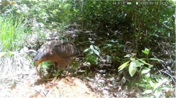 安徽牯牛降国家级自然保护区石台管理站副站长 方宏明(录音)蛇雕是一种猛禽,平时飞得很高,数量也比较稀少,动作迅猛,平常也很难捕捉到它的影像,这也是我们保护区第一次拍摄记录到它的影像,也是非常难得的一次机会在红外相机中捕捉到它的影像。)