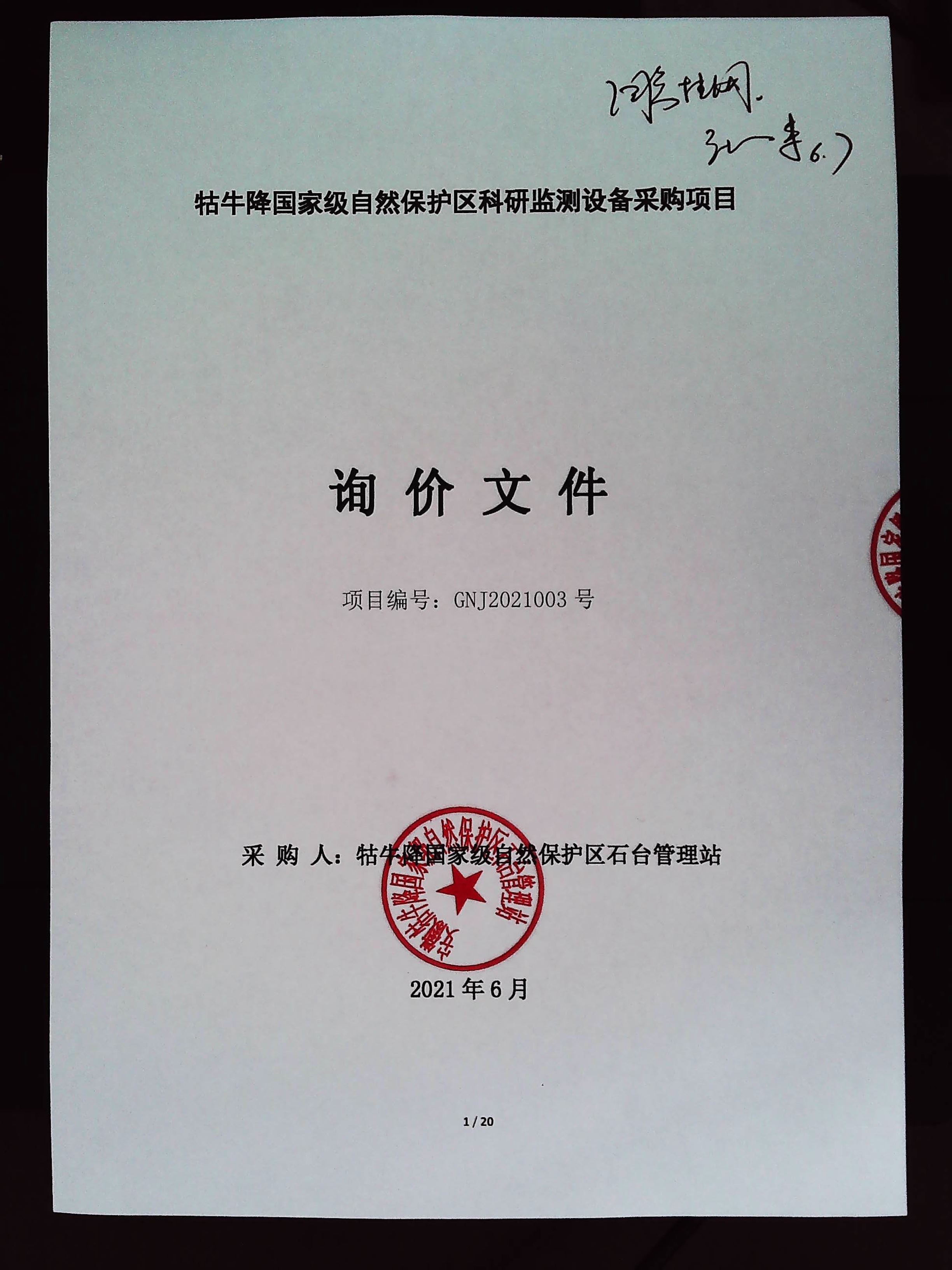 牯牛降国家级自然保护区科研监测设备采购项目询价文件