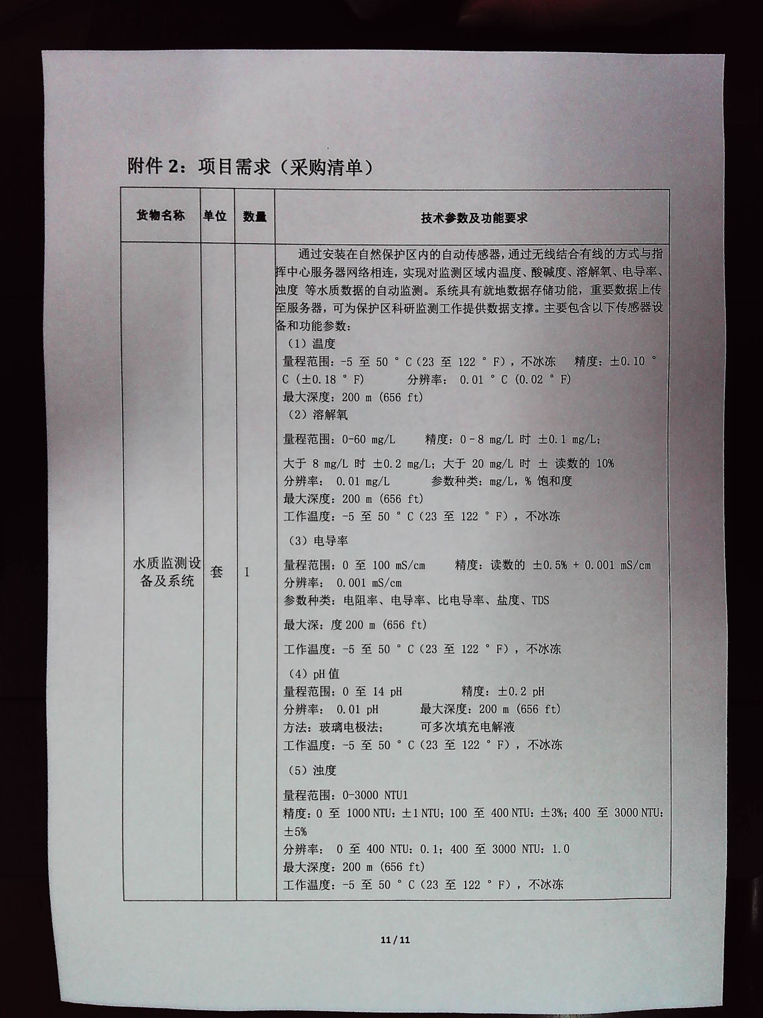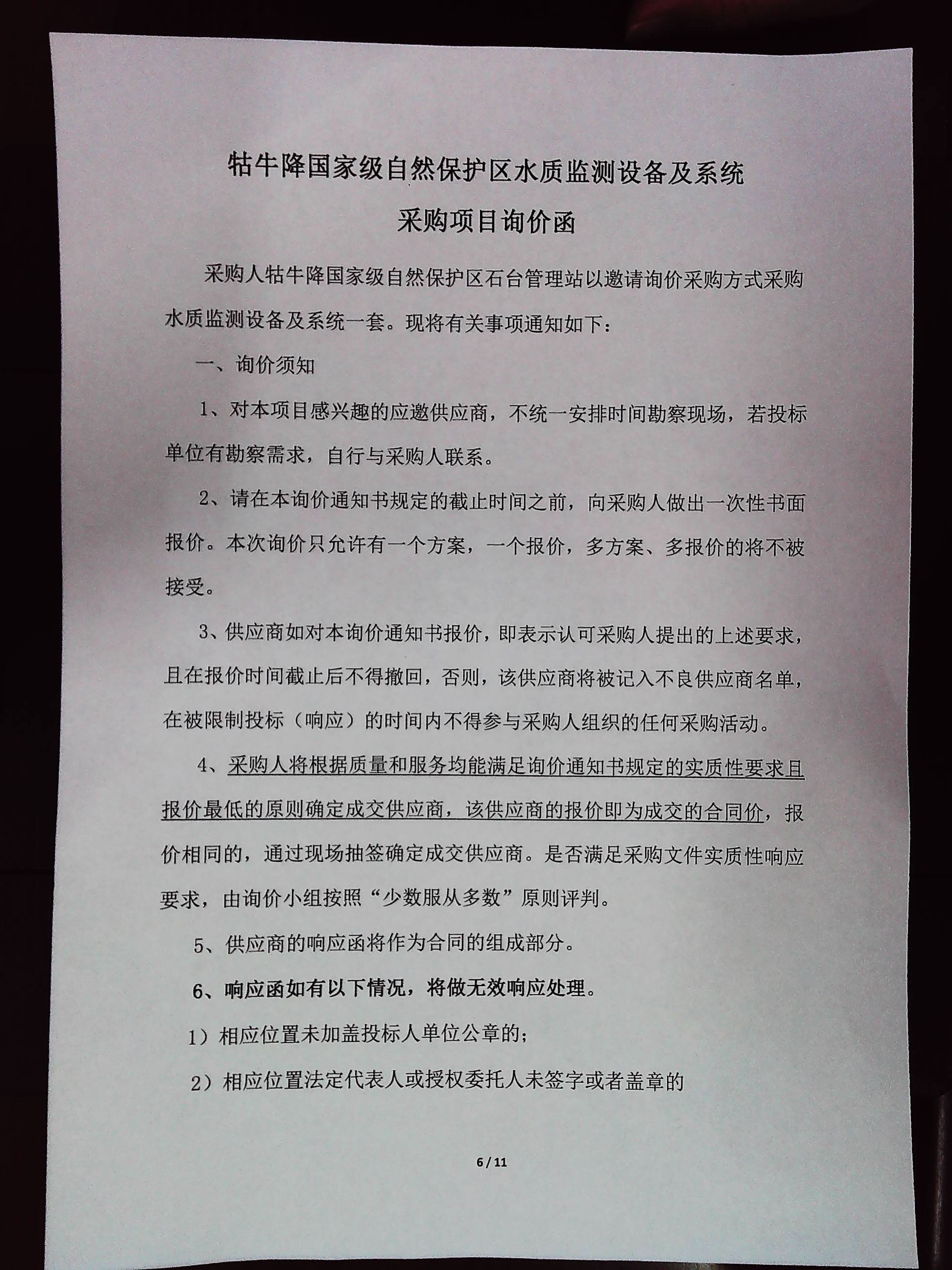 牯牛降国家级自然保护区水质监测设备及系统采购项目询价文件