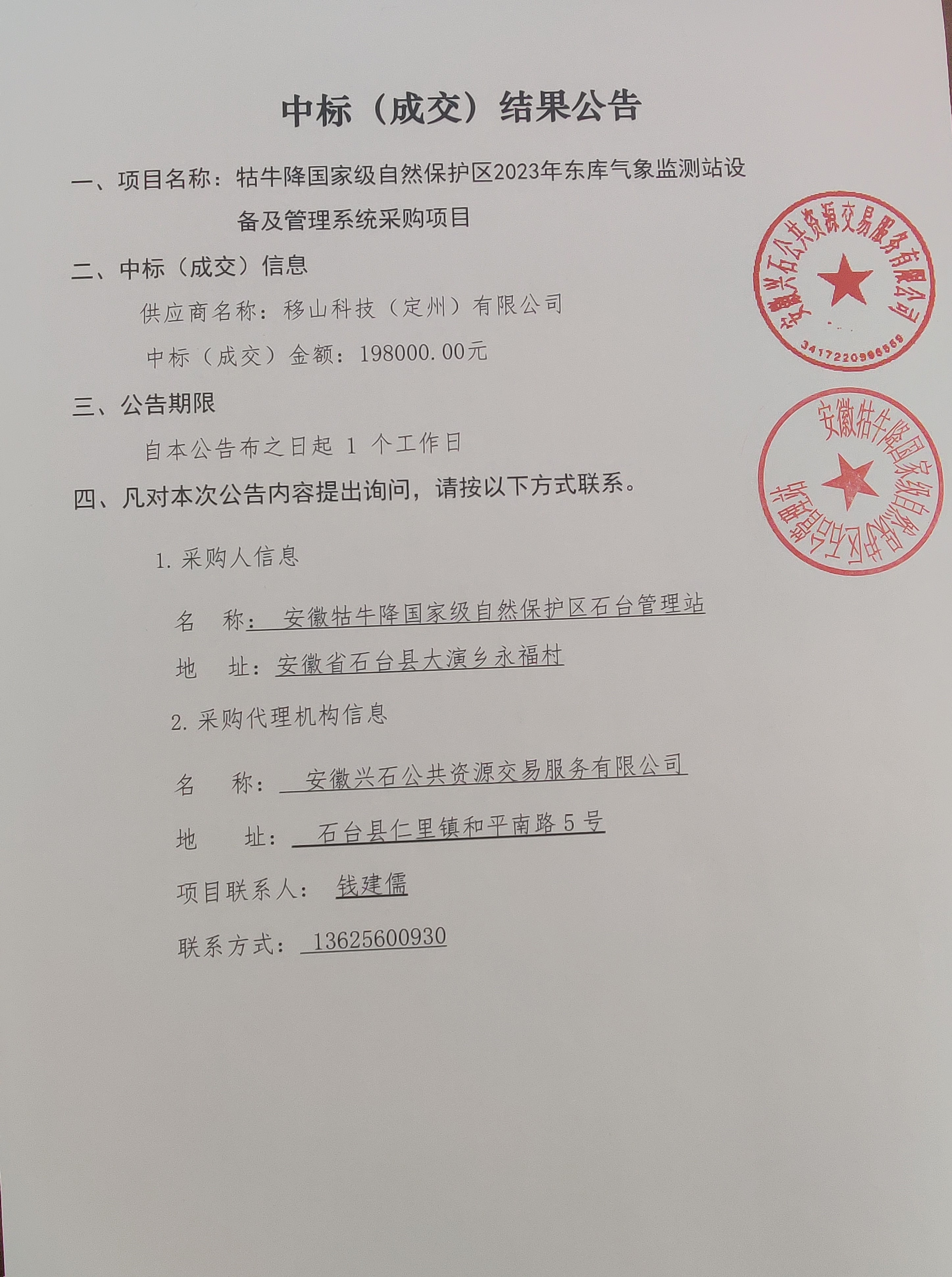 牯牛降国家级自然保护区2023年东库气象监测站设备及管理系统采购项目