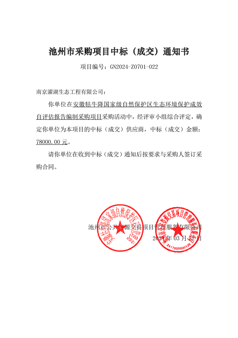 安徽牯牛降国家级自然保护区生态环境保护成效 自评估报告编制采购项目中标结果公示